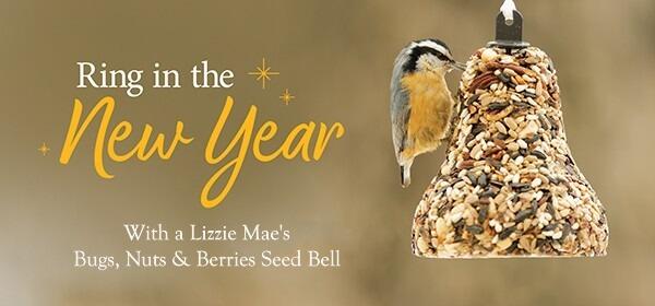 Add our Bugs, Nuts & Berries Seed Bell to your backyard bird feeding setup and welcome the new year!
